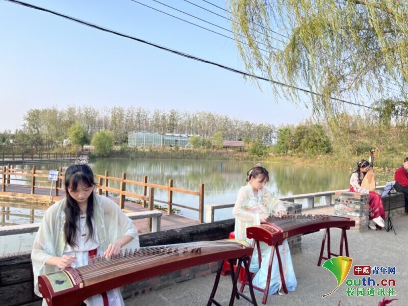 图为志愿者在乡村开展了一场民乐与西洋乐的精彩碰撞。中国青年网通讯员 陈馨玥 供图