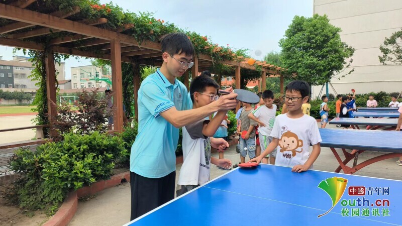 图为志愿者老师手把手地教导学生打乒乓球。 中国青年网通讯员 柴林鑫 供图