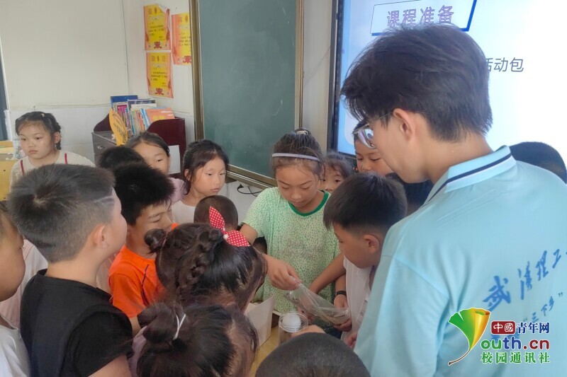 图为志愿者老师和孩子们在一起动手做实验。 中国青年网通讯员 陈佳琛 供图