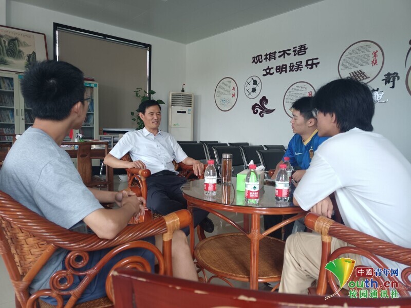 团队成员对钟佰均书记进行采访(左二为钟佰均书记)。中国青年网通讯员 庄明明 供图。