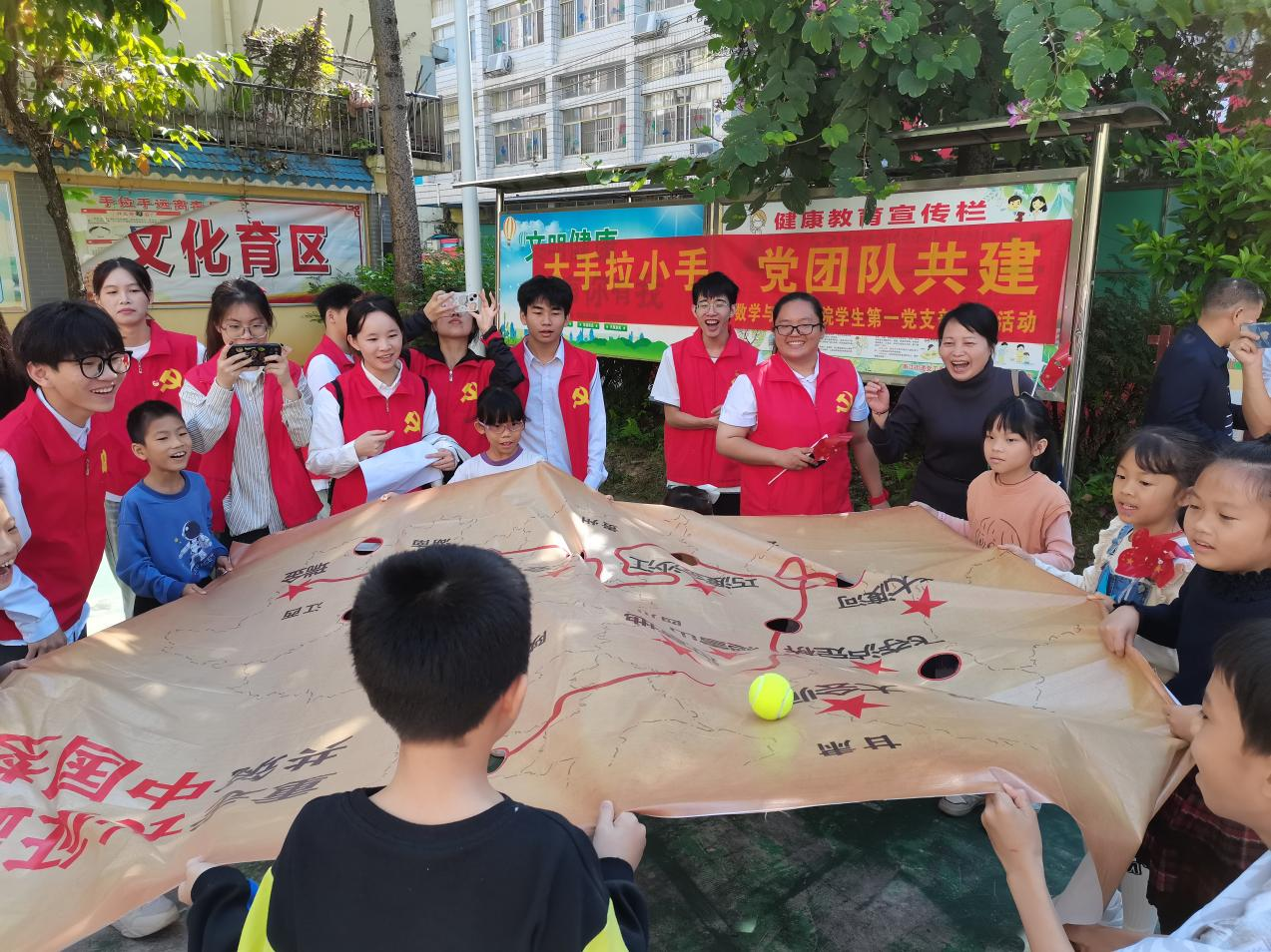 为增强大中小学生情谊,培养他们的创新思维和团队协作能力,同时为不同学龄层的学生提供一个交流与学习的平台,推动大中小学思想政治教育一体化建设内涵式发展。数学与统计学院精心组织开展“红数林”活力“π”大中小学生户外互动游戏,通过设计富有趣味的“红”球过桥、重走长征路、党团队乒乓接力、数字抱团、驿站传书、数字猜谜等一系列集红色文化和数学知识于一体的互动小游戏,让大中小学生在参与游戏中学习,在学习中享受运动的乐趣,展现新时代育新人的活力与朝气。