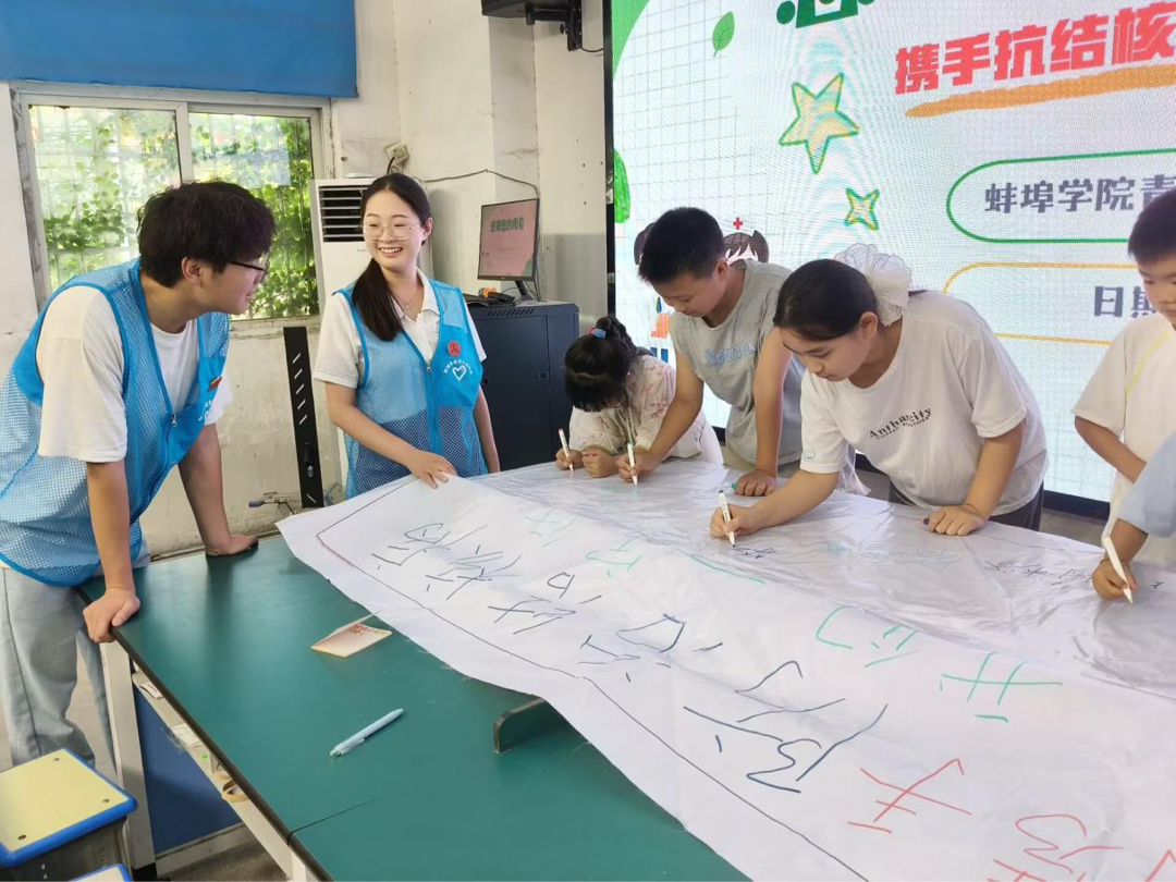在“携手防治结核病”主题活动中,学生们在长幅画布上绘画。学生朱以沫画了太阳和清澈小河,旁边写着“空气好,水干净”;学生朱博涛画了洗手泡泡和水龙头。“我画的是我们村以后的样子,有好多漂亮房子,还有大医院!”孩子们介绍道。课后,队员们将画作制成展板在村委会前展示,吸引村民驻足观看。