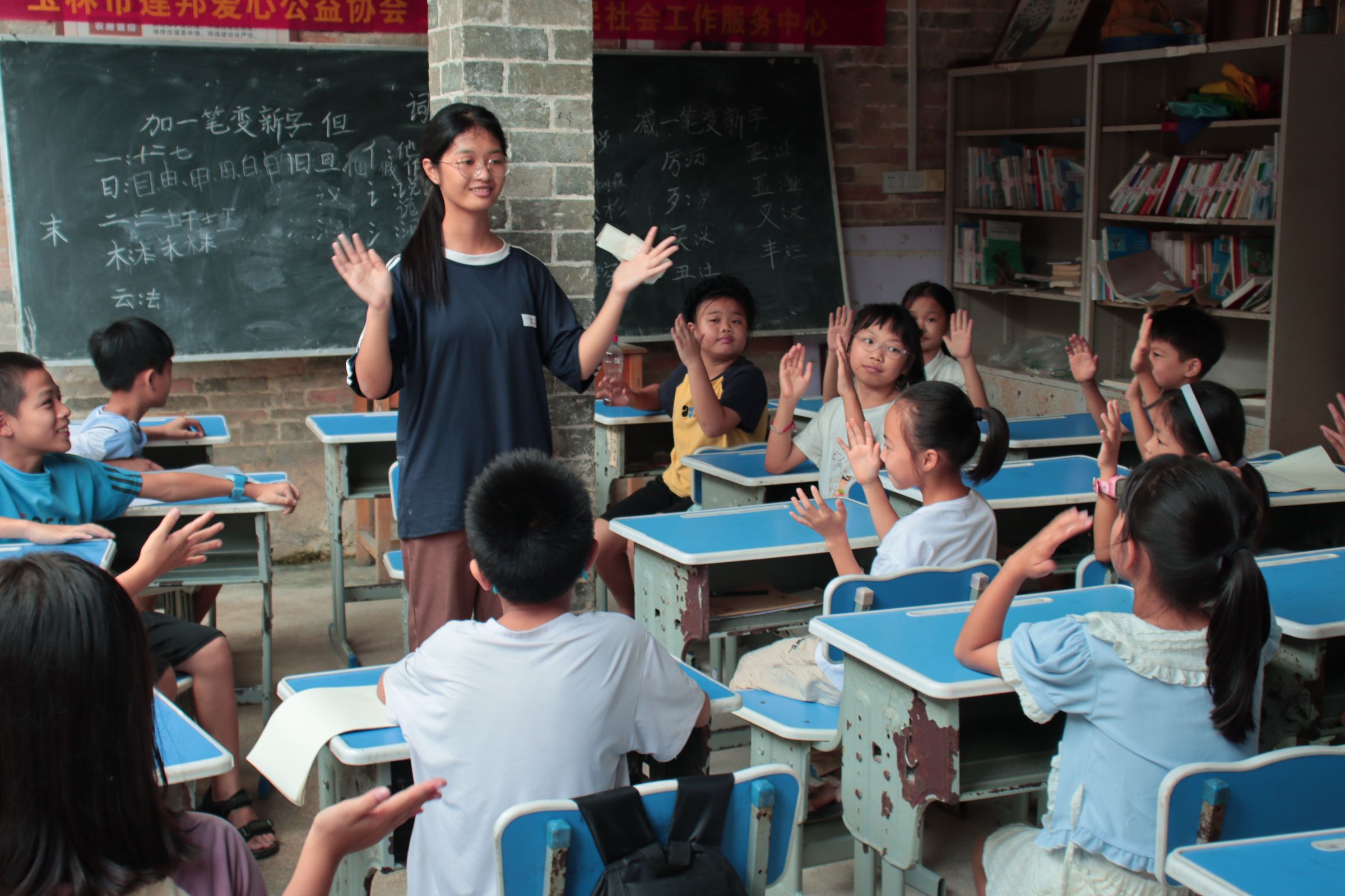 图为服务团成员在教室为孩子们传授语文知识。黎炜梅 供图