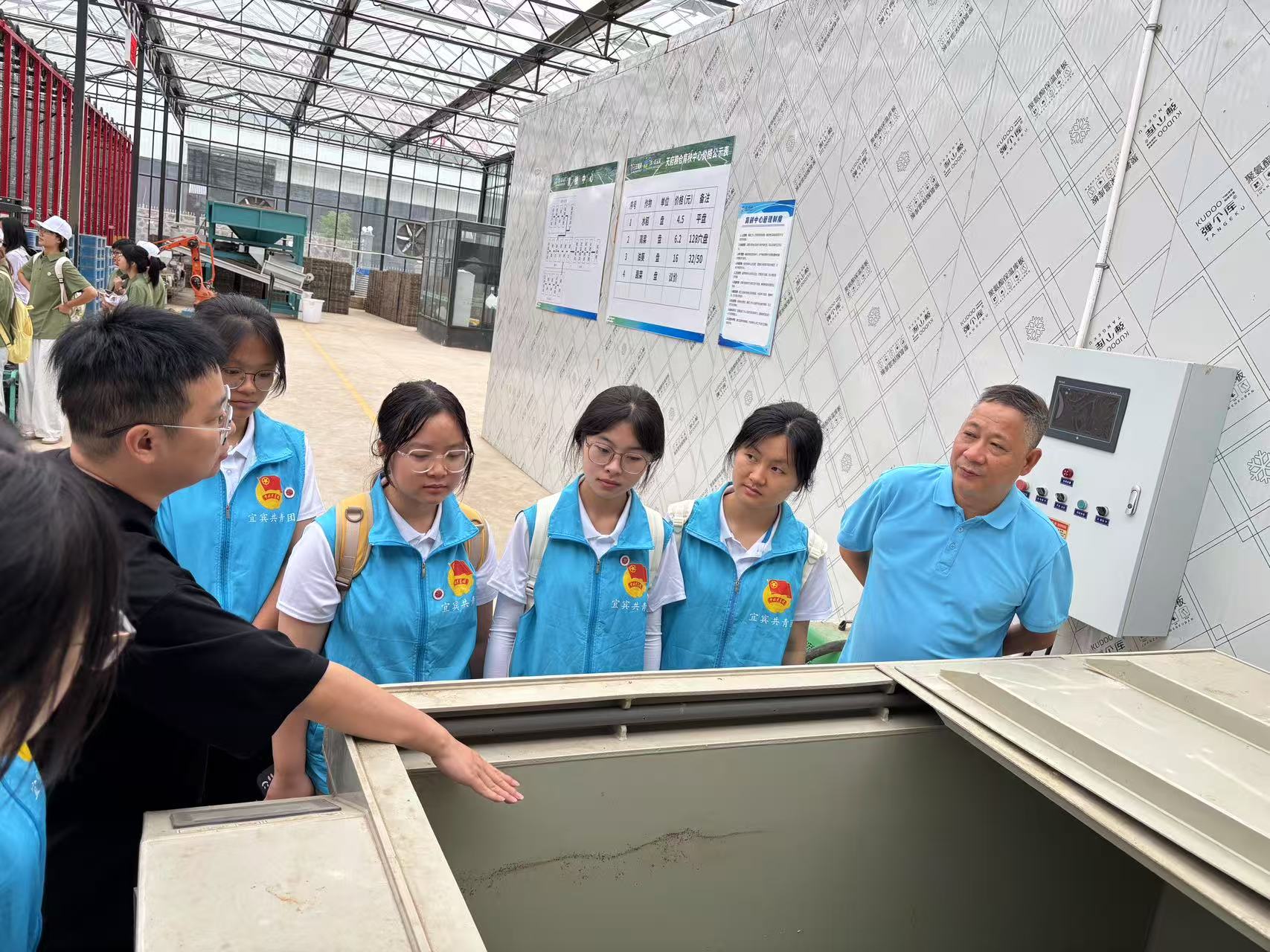 图为天府粮仓负责人向实践队员及指导老师介绍育苗设备。彭郑瑞 供图