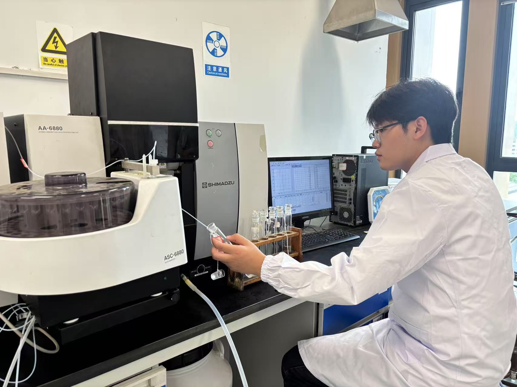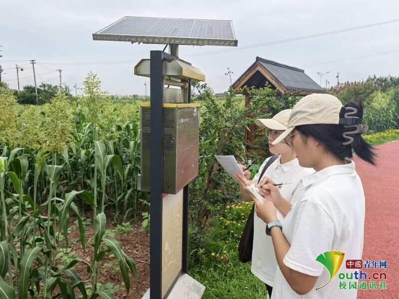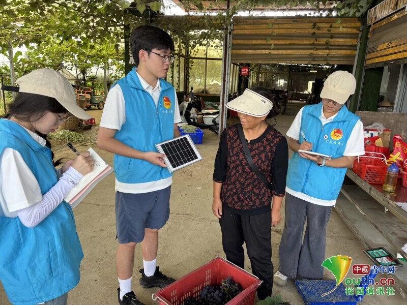 图为实践队员对江南镇葡萄园水样进行水质检测。彭郑瑞 供图