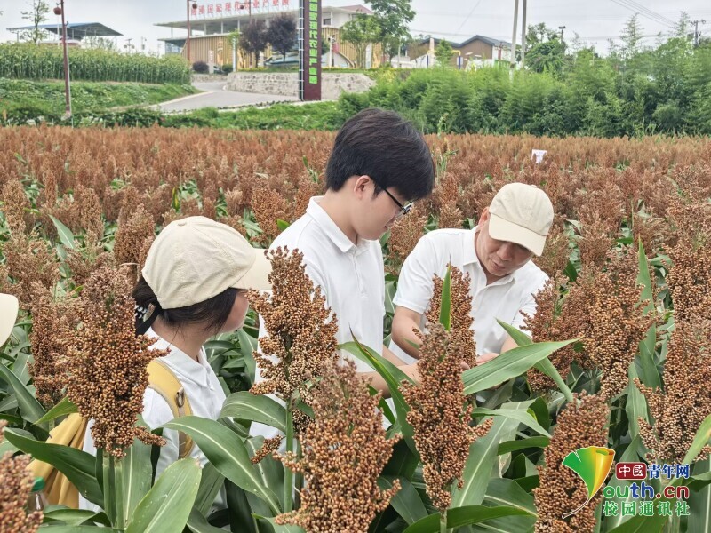 图为指导老师深入高粱地分析高粱病因。彭郑瑞 供图